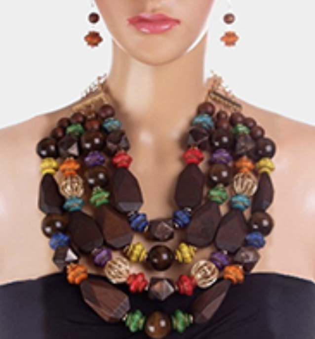 Wooden Fashion Necklace and Earrings Set